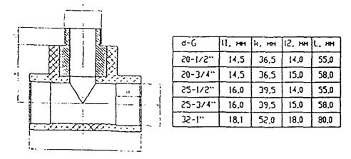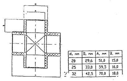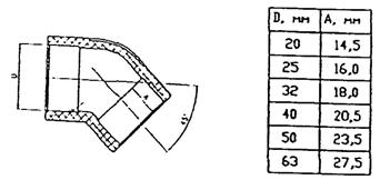 деталей пластмассовых трубопроводов: Примечание: При отрезке вершин сварного угольника (схемы б, в, д) необходимо предусматривать припуск на осадку при оплавлении и при сварке, для чего линию реза необходимо смещать от точки пересечения осей на 2…3 мм в сторону вершины угольника. 6.1.2. У готовых соединительных деталей контролируются внешний вид, основные геометрические параметры и стойкость к внутреннему гидростатическому давлению при температуре 20°С. Контроль качества деталей производится партиями не ранее чем через 16 часов после их изготовления. 6.1.3. Контролю на внешний вид подлежат все детали партии, при этом проверяют соответствие сварных швов требованиям, изложенным в разделе 5, а также состояние поверхности деталей вне зоны сварных швов. Контроль поверхности соединительных деталей проводят визуально. 6.1.4. Контролю основных размеров подвергаются 20 %, но не менее 10 штук деталей от партии из числа прошедших контроль на внешний вид. В случае если размер партии менее 10 штук, контроль размеров производится на всех изделиях. 6.1.5. Контроль размеров деталей производят с помощью шаблонов, угольников, калибров, рулетки, линеек и другого контрольно-измерительного инструмента. 6.1.6. Испытанию внутренним гидростатическим давлением подвергают 2 % деталей, но не менее трех по количеству от партии из числа прошедших контроль на внешний вид и контроль размеров. Значение гидростатического давления при температуре испытаний Рисп=Рисп20k, где Pисп20 - испытательное давление при 20°С (табл. 6.1); k - коэффициент корреляции, зависящий от температуры рабочей жидкости в трубопроводе (Т):