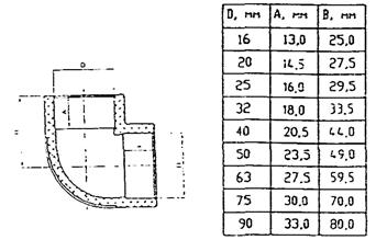 Примечание. По согласованию с потребителем допускается изготовление и поставка труб и патрубков другой длины. Табл. 10.3.Размеры, мм, канализационных труб и патрубков из ПВХ, ПП, ПНД и ПВД (см. рис.10.1)