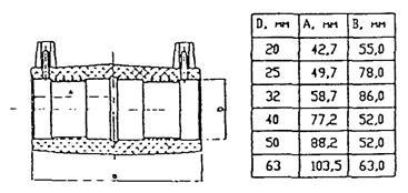 пластмассовых труб диаметром до 315 мм: 4.2.15. Формование раструбов диаметром 20, 25 и 32 мм можно выполнять с помощью специального устройства (рис. 4.16), в котором совмещены технологические операции по нагреву концов труб и формованию раструба. Рис.4.16. Устройство для нагрева концов труб и формования
