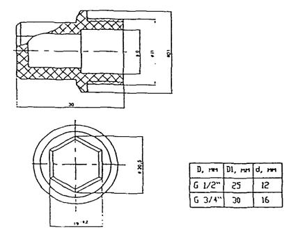 4 - соединительная вставка с наружной резьбой; 5 - ниппель; 6 -резиновые