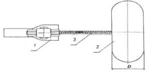 1 - зажим; 2 - груз; 3- гибкий элемент Рисунок 2 - Гаситель пляски проводов ГПП
