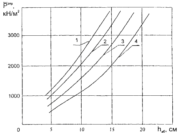 где ρ - плотность газовоздушной смеси в струе на расстоянии от среза сопла; ИСР - средняя скорость газового потока; S - единица расчетной площади обдуваемой поверхности; βо - угол атаки газового потока; Кd - коэффициент динамичности струйного воздействия, равный 1,25; Кε -коэффициент турбулентности струи, равный в среднем 1,3 (уточняется экспериментом для каждого типа двигателя); Сх, Сγ - коэффициенты сопротивления и подъемной силы, определяемые экспериментально. Аэродинамические коэффициенты сил сопротивления и подъемной силы Сх, Сγ изменяются в широких пределах и зависят от размеров обтекаемых объектов и их расположения по отношению к газовой струе. Для плоских гладких объектов эти коэффициенты имеют величину порядка 0,01 (асфальтобетонные покрытия хорошего качества). При наличии небольшого количества на поверхности трещин величина коэффициентов увеличивается до 0,1. Для сильно разрушенных поверхностей асфальтобетонных покрытий, имеющих разветвленную сеть трещин, а также для упрощенных и дерновых покрытий, величины этих коэффициентов составляют от 0,2 до 0,5 в зависимости от степени разрушения и характера неровностей поверхностей. Для обеспечения устойчивости работы асфальтобетонного покрытия при воздействии струи необходимо, чтобы вес единицы площади (расчетной) слоя покрытия (Р) был больше отрывающего усилил Ротр., т. е. Р > Ротр, где Ротр = Рг-Рв. Из этого условия, например, минимальная толщина слоя асфальтобетона составит