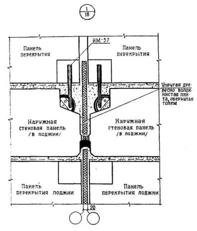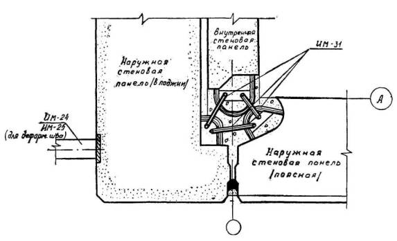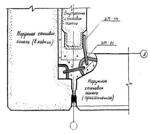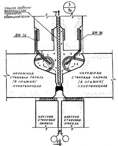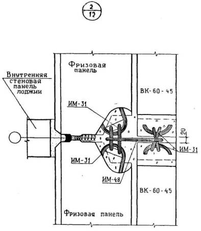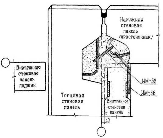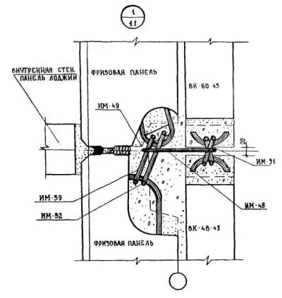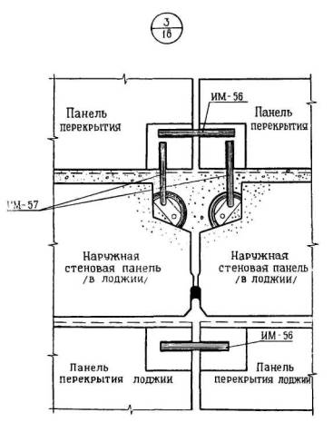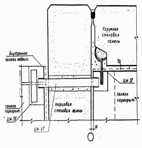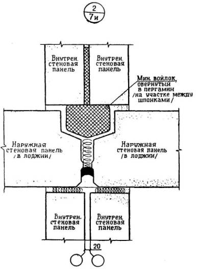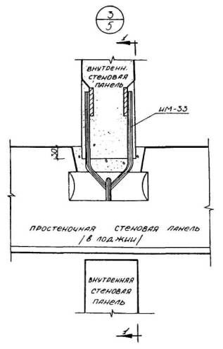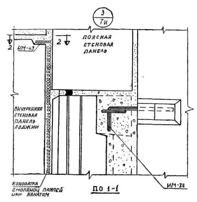 Сопряжение наружных и внутренних стен западающих лоджий.Узел 1/8