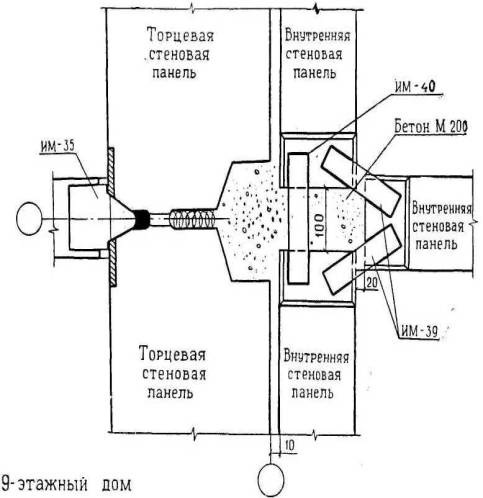 Сопряжения внутренних стеновых панелей.Узел 3АБ/14