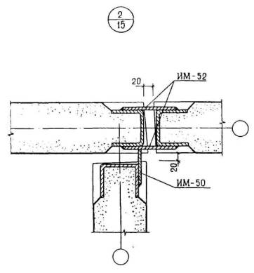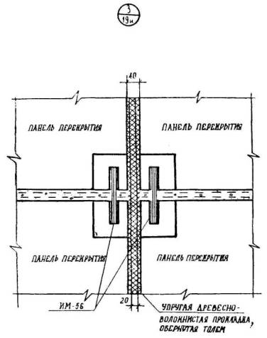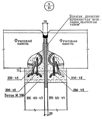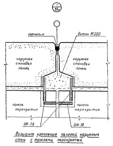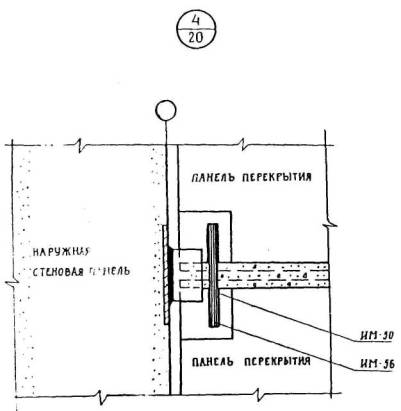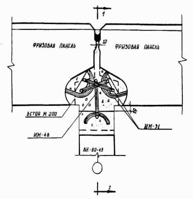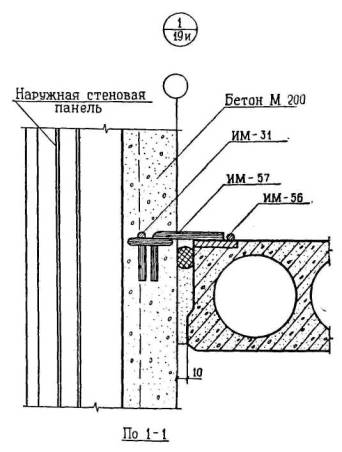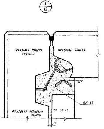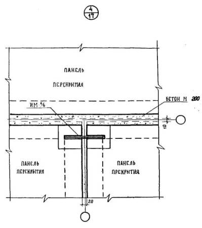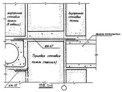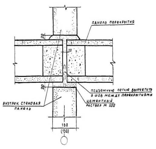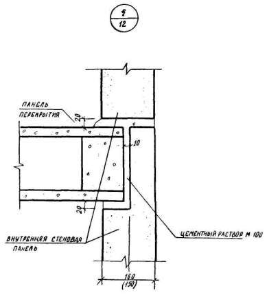 Детали опирания панелей перекрытия на внутренние стены.Узел 1/12