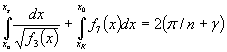 Верхние знаки (+) берутся для угловатости типа "сердечко" (см. рис. 1); знаки (-) берутся для стыков, имеющих форму "домика". Ниже будем рассматривать угловатость типа "сердечко". Так как подкоренное выражение x - f2(x) в интегралах уравнений (3) и (4) при х = хо равно нулю, то для получений численных результатов эти интегралы потребовали преобразования с выделением особенности функции x - f2(x) в окрестности х = хо. После преобразований уравнения (3) и (4) приняли вид