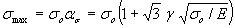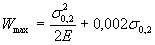 где Wmax, Wн - работа деформации в зоне концентратора и в сечении, принятом за номинальное. Если принять, что Wmax соответствует остаточной деформации 0,2 %, то ее величина для идеально эластического материала равна