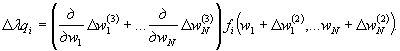 В методе исследовательного нагружения обычно ограничиваются первым членом ряда (К = 1). Решая полученную систему линейных уравнений, определяют Δwi. В работе [4] предложено учитывать квадратичные члены в разложении (21), исходя из линейной системы уравнений (i - 1, 2…N)