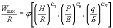 где R, H и h - геометрические характеристики модели; Е, ρ - характеристики материала; p. q - силовые воздействия; t - время. Анализ показателей степеней при параметрах дозволяет сделать вывод, что независимыми переменными являются безразмерные величины H/R, p/Е и q/E, в результате чего уравнение регрессии записывается в виде
