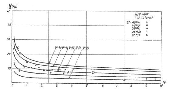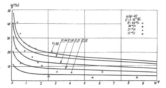 При σ0,2 = 220 МПа и Е = 2∙105 МПа величина С согласно (9) равна 2,2. Для этого случая построены зависимости V от параметра