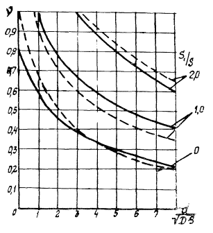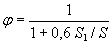 При φ = 1 (неукрепленное отверстие) формула (3) переходит в (2). При φ → 0, т.е. с увеличением эффекта подкрепления отверстия штуцером, величина 0,64 (1 + φ) будет стремиться к 0,84 и тем самым осуществится переход к новому виду закрепления края оболочки. Как показывают расчеты и результаты тензометрирования [2], величина φ зависит прежде всего от отношения S1/S, где S1 - толщина стенки штуцера. Представим φ в следующем виде: