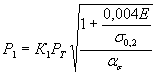 При выводе соотношения (9) не учитывалось влияние напряжений изгиба на начало пластического течения. Сопоставим расчет с экспериментальными данными. В расчетной практике ФРГ получил распространение метод выбора толщины стенки по т.н. коэффициентам ослабления. Эта методика была разработана на основе исследований Зибеля, который предложил за начало текучести принимать момент, когда интенсивность остаточной деформации в т. А окажется равной 0,2 %. При этом расчетная величина давления начала текучести основной трубы определялась по формуле РТ - σ0,2S/R. Обозначив через Р1 давление, соответствующее началу текучести в опасном сечении тройника, получим следующее выражение для V