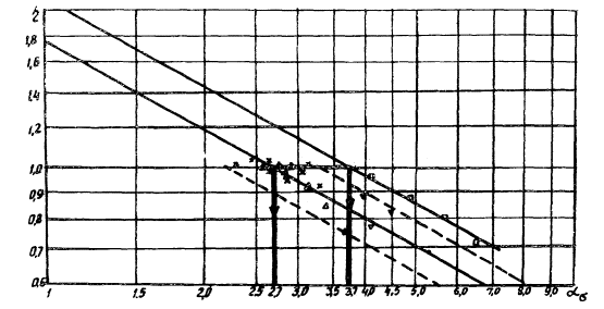 Примечание: Звездочкой обозначены случаи, когда разрушался основной цилиндр Здесь SК сопротивление разрыва образца при одноосном растяжении; Кσf = коэффициент концентраций напряжений в момент разрыва. Как показано в [8] на основе анализа разрушения в зоне различных концентраторов, величина Кσf является степенной функцией ασ. Соответствующий показатель степени может быть определен на основе обработки экспериментальных данных. Кроме того, используем эмпирическую связь между SK и σв, предложенную М.П. Марковцом [8]: SK/σв = 1 + 1,4 ΨК, (15) где ΨК - относительное сужение при разрыве.