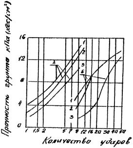 Рис. 2. Определение прочности грунта по количеству ударов ударником У-1 на