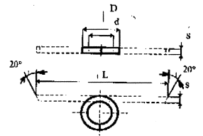 Берем набивку размером 16×16 мм; Для уплотнения необходимо использовать 6 колец: 6×16 = 96 мм; Уплотнить на 20%: 96 - 96×0,25 = 77 мм; Продвижение грундбуксы на 1/3 от длины грундбуксы: 1/3×40 ≈ 13 мм; Необходимая глубина сальниковой камеры: 77 + 13 = 90 мм; Высота подсальникового кольца: 190 - 90 = 100 мм. 2.5. "Разбивать", "раздавливать" до большего размера, "забивать" сальниковую набивку при уплотнении сальниковых камер насосов категорически запрещается. 2.6. При нарезке набивки для колец необходимо, чтобы при установке в сальниковую камеру обрезы набивочных колец были прижаты параллельно друг другу. Рекомендуемый угол реза - 20°. Длину заготовки для изготовления сальникового кольца можно определить по формуле: L = π × (d + l,5 × s) (см. Рис. 2). где d - диаметр шпинделя (штока), мм; s - размер набивки, мм.
