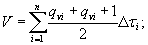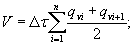 где qmi, qvi, qci - значения функций qm(τ), qv(τ) и qc(τ) в начале интервала ∆τi, соответственно; qmi+1, qvi+1, qci+1 - значения функций qm(τ), qv(τ) и qc(τ) в конце интервала ∆τi,- соответственно; п - число интервалов дискретизации в течение времени (τк- τн); τн и τк - время начала и конца периода времени интегрирования соответственно. 5.3.3 При дискретном интегрировании функций расхода по времени τ с равномерным интервалом дискретизации ∆τ количество среды рассчитывают по формулам: - при прямоугольной аппроксимации