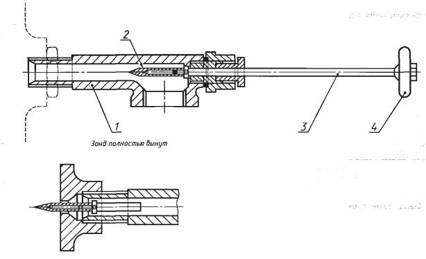 1 - корпус; 2 - головка зонда; 3 - ось зонда; 4 - рукоятка Рисунок 10 - Зонд 6.2.9 Соединительные трубки (линии) 6.2.9.1 ППД располагают как можно ближе к СУ. Рекомендуется, чтобы длина соединительных трубок не превышала 16 м. При необходимости применения больших длин целесообразно использовать электрическую или пневматическую передачу. 6.2.9.2 Во избежание искажения перепада давления, возникающего из-за разности температуры трубок, две соединительные трубки должны быть расположены рядом. Если существует опасность нагрева или охлаждения заполненных жидкостью соединительных трубок при их вертикальном или наклонном расположении, то их совместно теплоизолируют. 6.2.9.3 При применении соединительных трубок, составленных из отдельных секций, диаметр-условного прохода этих секций должен быть одинаковым. Внутренний диаметр соединительных трубок должен быть более 6 мм. Если существует опасность конденсации среды, находящейся в соединительных трубках, или образования в ней пузырьков газа, то внутренний диаметр соединительных трубок должен быть не менее 10 мм. Рекомендуемые значения внутреннего диаметра соединительных трубок приведены в таблице 4. Таблица 4 - Внутренний диаметр соединительных трубок