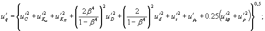где u'ρ* - относительная стандартная неопределенность плотности, которую рассчитывают без учета и'ρс, так как неопределенность измерений расхода, вызванная неопределенностью результата измерений рс, учтена в формуле (10.16) членом 0,25 и'ρс. 10.3 Составляющие неопределенности расхода среды10.3.1 Относительную стандартную неопределенность коэффициента истечения с учетом влияющих факторов рассчитывают по формуле