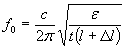 где s - доля открытой части площади пластины покрытия l- толщина пластины, м; Δl - концевая поправка к отверстиям; с и t - те же, что в формуле (15). График зависимости (16) показан на рисунке 14. Концевая поправка зависит от диаметра отверстий и их относительного положения, а также от скорости проходящего потока, которая должна превышать 15 м/с. Примечание - При одной и той же глубине резонатор Гельмгольца всегда настроен на более низкую частоту и функционирует в более узкой полосе частот, чем аналогичный четвертьволновый резонатор. Демпфирование камеры не приводит к значительным изменениям ширины полосы. Для сравнения пористый материал, используемый в качестве покрытия, действует как эффективный демпфер, но чувствителен к загрязнению. 6.2.1.4 Пластинчатые или пленочные резонаторы Для вычисления резонансной частоты пластинчатого или пленочного резонатора следует заменить t(l + Δl) в формуле (16) на р/m":