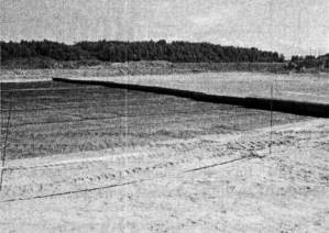 Рис. 1. Укладка двухосной георешетки В образовавшуюся петлю вставляется соединительный арматурный стержень диаметром 10 мм. После пропускания стержней через ячейки стыкуемых георешеток, концы стержней загибаются по 20 см с каждой стороны стыкуемых полотнищ. Процесс укладки одноосной георешетки приведен на рис. 2.