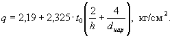 где α =20 - коэффициент теплоотдачи с поверхности льда в естественных условиях, ккал/м2.час. град. В отдельных случаях необязательно точно знать ожидаемую толщину ледяной пробки; При оценке трещиностойкости оболочек диаметром 60 см, когда известно, что в процессе эксплуатации могут образоваться ледяные пробки толщиной более 120 см, за расчетную толщину можно принять h = 120 см. При оценке трещиностойкости оболочек диаметром 80 см и более, когда известно, что ледяные пробки могут быть толще 70 см, достаточно произвести проверку для h = 60-70 см. 6. Расчетная начальная температура ледяной пробки t0 определяется следующим образом. Вначале по табл. 1 определяется время τ0, которое необходимо для того, чтобы ледяная пробка заданных размеров охладилась от 0° до температуры, близкой к температуре воздуха. Время охлаждения (τ0) ледяных пробок, сутки