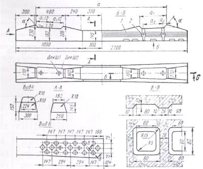 5- 1.5.3. Все балластные материалы должны удовлетворять требованиям соответствующих стандартов на них. 1.5.4. Конструкция балластной призмы и толщина балластного слоя под железобетонными шпалами должны соответствовать утвержденным поперечным профилям железнодорожного пути. 1.6. Железобетонные шпалы не должны применяться на участках с нестабилизировавшимся или больным земляным полотном. Перед укладкой железобетонных шпал земляное полотно должно быть обследовано и обнаруженные больные места (пучины, просадки и др.) оздоровлены. 1.7. Система ведения хозяйства с железобетонными шпалами должна предусматривать наиболее полное использование повышенной долговечности железобетонных шпал многократным повторным применением их в главных и станционных путях. 2, Конструкции железобетонных шпал к основные технические требования к ним2.1. Железобетонные шпалы, выпускаемые промышленностью, должны отвечать требованиям государственных стандратов или технических условий утвержденных в установленном порядке. 2.2. Конструкция и размеры железобетонных