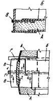 3.24. При выполнении сварки ответственных узлов резервуара особенно тщательно выполняют пересечения стыковых соединений, а также стыковых и тавровых соединений, так как при наличии непровара или других дефектов в пересечении указанных швов часто наблюдается образование трещин.