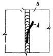 - местные подрезы поперек усилия (до 25 % длины шва) глубиной 0,5 мм при толщине стали до 20 мм и 1 мм при толщине стали более 20 мм.