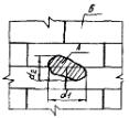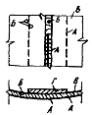 Карта 4.6 Дефект Местная потеря устойчивости (вмятины) торовой части кровли Трещин в зонах прогиба нет. Метод исправления 1. Устанавливают границы вмятин торовой части. 2. Подгоняют внахлестку накладку с закругленными углами толщиной, равной толщине металла торовой части. 3. В средней части накладки сверлят отверстие диаметром 8 - 10 мм и нарезают резьбу для постановки болта. 4. Накладку по наружному контуру сваривают с кровлей. 5. По окончании работ в отверстие устанавливают болт. Карта 4.7. Дефект Местная потеря устойчивости (вмятины) торовой части кровли. В зонах перегиба имеются трещины. Метод исправления 1. Устанавливают границы дефектного места. 2. Дефектное место вырезают и на его место подгоняют встык свальцованный элемент и сваривают. 3. Толщина вставленного элемента должна быть равна толщине вырезанного. 4. Герметичность сварных соединений проверяют вакуум-методом.