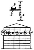 Дефект Замена стенки резервуара без разрушения днища и перекрытия. Метод исправления Ремонт стенки осуществляется при помощи специальных монтажных стоек, поддомкрачивающих стенку резервуара. Стойки устанавливают снаружи резервуара в количестве 8 - 10 штук в зависимости от объема резервуара и приваривают к листам верхнего пояса около ферм (балок перекрытия). Допускается также замена стенки резервуара последовательными участками с перемещением монтажных стоек после подведения нового участка и его сварки.