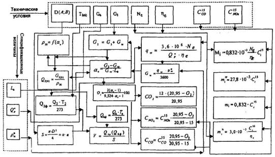 Рис. В.1 - Блок-схема расчета экологических показателей ГТУ