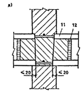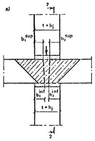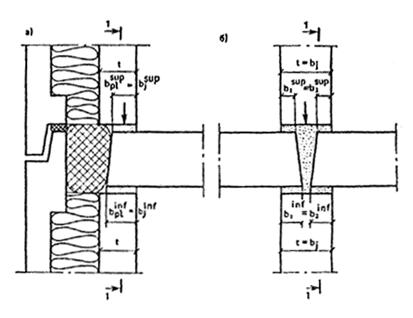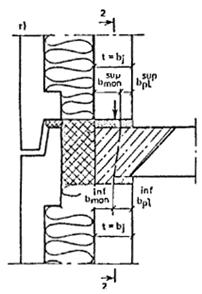 где tт — расчетная величина толщины растворного шва, определяемая по указаниям п. 5.22; bт — расчетная ширина растворного шва (размер по толщине стены), принимаемая: для стыков с двухсторонним опиранием перекрытий, равной толщине стены t; для нижнего растворного шва комбинированного стыка bт = bj ‑ dpw, (28)