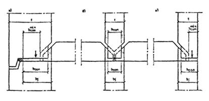Так как tcon = 70 мм < bcon = 125 мм, то коэффициент hcon = 1,1 (для стеновой панелей из легкого бетона). Так как bcon = 125 мм < t = 350 мм, то d1,con = 0; d2,con = dw = 18 мм. Для стыка с односторонним опиранием перекрытия величина gpl = 1. Коэффициент hj равен минимальному значению следующих величин: