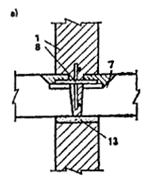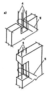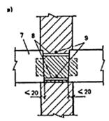 где Atr, Rs,tr — соответственно площадь сечения и расчетное сопротивление арматуры поперечных связей в горизонтальном стыке; mk,c — количество шпонок, расположенных в сжатой зоне стыка: mk — общее количество шпонок в стыке. 5.47. Для горизонтального стыка с замоноличенными бетоном шпонками из прокатного металла (двутавра, уголков и др.) сопротивление сдвигу принимается равным большей из величин: