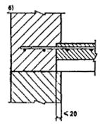 поверхностью вниз, при глубине опорного участка стыка менее 1/3 толщины стены