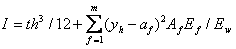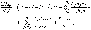где tw — толщина стенки неплоского столба; h — высота горизонтального сечения столба, равная длине в плане его стенки; т — количество всех полок столба; af — расстояние от полки f до наиболее сжатой грани столба; Ef, Ew — приведенные модули деформации соответственно полосы, образующей полку f и стенку столба и вычисляемые по формуле (1); Аf — площадь горизонтального сечения полки f; для слоистых стен все несущие слои предварительно приводятся к одному из них; А — приведенная площадь горизонтального сечения А = ht + при проверке прочности столба сопротивление полок, расположенных в растянутой зоне сечения не учитывается; для полок, расположенных в сжатой зоне сечения, принимается, что нормальные напряжения равномерно распределены по площади полки; среднее значение сжимающих напряжений в полке sf определяется по формуле sf = sw Ef/Ew. (101) где sw — значение сжимающих напряжении в стенке в месте ее сопряжения с полкой f; в случае, если sf > Rcf (где Rcf — сопротивление полки сжатию, определяемое по указаниям п. 5.21), то принимается, что sf = Rcf. 5.33. Для расчета прочности неплоского столба по горизонтальным сечениям рекомендуется использовать изложенный в п. 5.31 алгоритм с учетом следующих особенностей. 5.33.1. Предельная несущая способность неплоского столба при сжатии вычисляется по формуле Nmах = Nw x/h + где Nw — несущая способность стенки при равномерном сжатии по ее длине Nw = Rcw th, (103) Rcw — приведенное сопротивление стенки сжатию, вычисляемое для опорных и средних сечений соответственно по формулам (24) и (25); х — высота сжатой зоны сечения