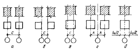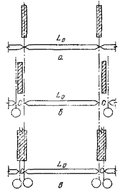 Черт. 5 Примечание. На чертежах 5 и 6 L0i, и l0i (где i = 1, 2, 3) имеют тот же смысл, что и в п. 1.2 для L0, l0. 3.5. Координационный размер конструктивного элемента может быть больше основного координационного размера здания (сооружения), если конструктивный элемент выходит за пределы основного координационного размера здания (сооружения) (черт. 6). В этом случае l01 = L01+a1+a2; (1) l02 = L02-a2. (2) Черт. 6 3.6. Координационные размеры проемов окон, дверей и ворот, аддитивные размеры конструктивных элементов в плане и по высоте, а также размеры шагов и высот этажей в некоторых зданиях, не требующих больших объемно-планировочных элементов, назначают предпочтительно кратными укрупненным модулям 12М, 6М и ЗМ. 3.7. Координационные размеры, не зависящие от основных координационных размеров (например, сечения колонн, балок, толщины стен и плит перекрытий), назначают предпочтительно кратными основному модулю М или дробным модулям 1/2М, 1/5M. 3.8. Координационные толщины плитных изделий и тонкостенных элементов назначают кратными дробным модулям 1/10М, 1/20M, а ширину швов и зазоров между элементами - кратной также 1/50М и 1/100М. Черт. 7 3.9. Координационные размеры, кратные 3М/2 и 1/2М/2, допускаются при членении пополам координационных размеров, равных нечетному числу модулей 3М и 1/2M. 3.10. Конструктивные размеры (l, b, h, d) строительных элементов следует определять, исходя из их координационных размеров за вычетом соответствующих частей ширины зазоров (черт. 7), то есть l = l0 - q1 - q2. (3) Размеры зазоров следует устанавливать в соответствии с ГОСТ 21778, ГОСТ 21779, ГОСТ 21780, ГОСТ 26607. 4. ПРИВЯЗКА КОНСТРУКТИВНЫХ ЭЛЕМЕНТОВ К КООРДИНАЦИОННЫМ ОСЯМ4.1. Расположение и взаимосвязь конструктивных элементов следует координировать на основе модульной пространственной координационной системы путем привязки их к координационным осям. 4.2. Модульная пространственная координационная система и соответствующие модульные сетки с членениями, кратными определенному укрупненному модулю, должны быть, как правило, непрерывными для всего проектируемого здания или сооружения (черт. 8а). Прерывную модульную пространственную координационную систему с парными координационными осями и вставками между ними, имеющими размер С, кратный меньшему модулю (черт. 8б, в), допускается применять для зданий с несущими стенами в следующих случаях: 1) в местах устройства деформационных швов; 2) при толщине внутренних стен 300 мм и более, особенно при наличии в них вентиляционных каналов; в этом случае парные координационные оси проходят в пределах толщины стены с таким расчетом, чтобы обеспечить необходимую площадь опоры унифицированных модульных элементов перекрытий (черт. 8в); 3) когда прерывная система модульных координат обеспечивает более полную унификацию типоразмеров индустриальных изделий, например, при панелях наружных и внутренних продольных стен, вставляемых между гранями поперечных стен и перекрытий. 4.3. Привязку конструктивных элементов определяют расстоянием от координационной оси до координационной плоскости элемента или до геометрической оси его сечения. 4.3.1. Привязку несущих стен и колонн к координационным осям осуществляют по сечениям, расположенным в уровне опирания на них верхнего перекрытия или покрытия. 4.3.2. Конструктивная плоскость (грань) элемента в зависимости от особенностей примыкания его к другим элементам мо