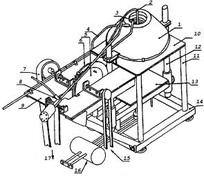 Размеры в миллиметрах 1 - радиационная панель с нагревательным элементом; 2 - подвижная горелка; 3 - вспомогательная стационарная горелка; 4 - силовой кабель нагревательного элемента; 5 - кулачок с ограничителем хода для ручного управления подвижной горелкой; 6 - кулачок для автоматического управления подвижной горелкой; 7 - приводной ремень; 8 - втулка для подсоединения подвижной горелки к системе подачи топлива; 9 - монтажная плита для системы зажигания и системы перемещения подвижной горелки; 10 - защитная плита; 11 - вертикальная опора; 12 - вертикальная направляющая; 13 - подвижная платформа для образца; 14 - основание опорной станины; 15 - ручное управление; 16 - рычаг с противовесом; 17 - привод к электродвигателю Рисунок А1 - общий вид установки для испытаний на воспламеняемость