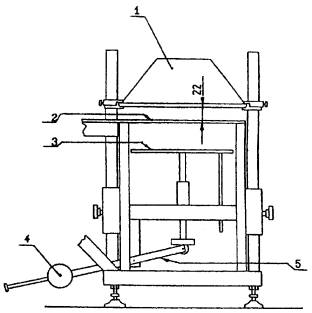 1 - радиационная панель; 2 - защитная плита; 3 - подвижная платформа; 4 - противовес; 5 - рычаг Рисунок А4 - Опорная станина и радиационная панель