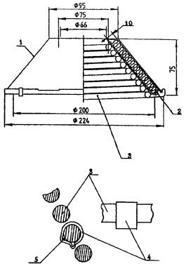 Размеры в миллиметрах 1 - кожух с теплоизолирующим слоем; 2 - теплоизолирующий слой из минерального волокна; 3 - нагревательный элемент; 4 - хомут; 5 - термоэлектрический преобразователь Рисунок А5 - Радиационная панель