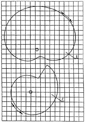 1 - кулачок приводного механизма; 2 - кулачок с ограничителем хода Рисунок А8 - Механизм привода подвижной горелки (сетка со стороной квадрата 10 мм)