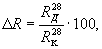 При определении эффективности добавок, замедляющих твердение, уменьшение прочности бетона основного состава DR в процентах вычисляют по формуле