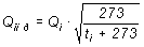 в расчете на 1 м2 Qпр = 0,0087 (Р . F)1/2 ,