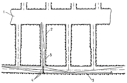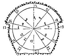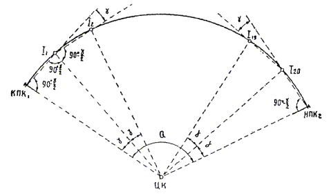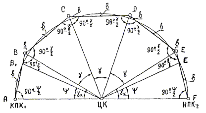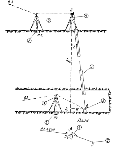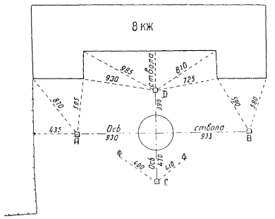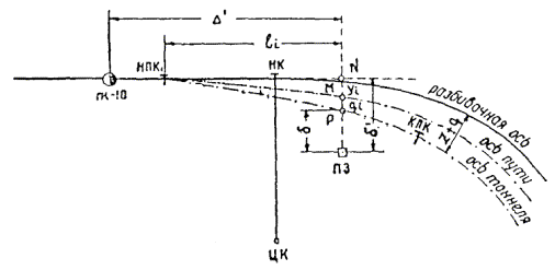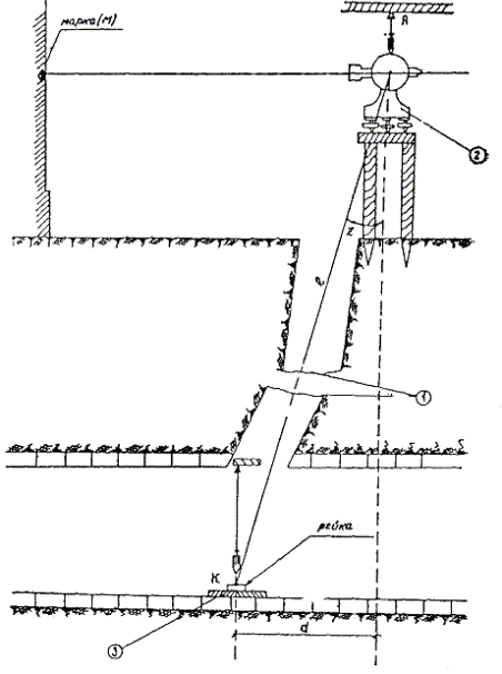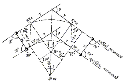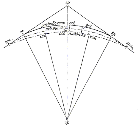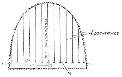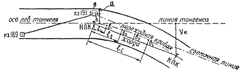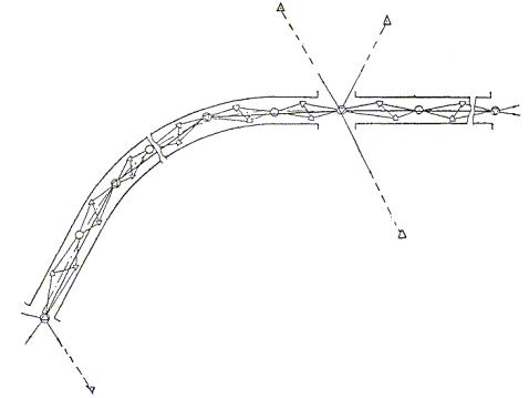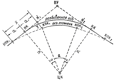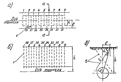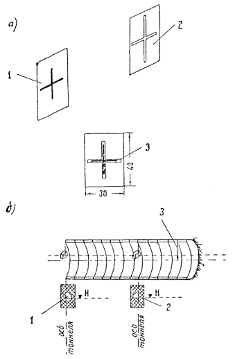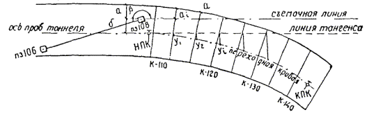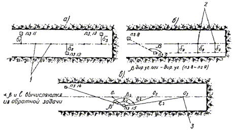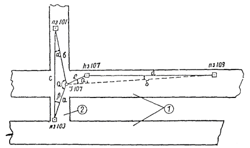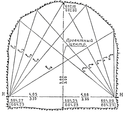 § 4. Проектная организация создает наземную геодезическую основу для перенесения проекта в натуру, обеспечивающую требуемую точность сбоек встречных выработок. § 5. Основные разбивочные работы, связанные с перенесением проекта подземных сооружений в натуру, производятся от пунктов подземной маркшейдерской основы, создаваемой маркшейдерской службой строительной организации. § 6. В процессе строительства производятся подробные съемки, имеющие назначение: а) графическое отображение хода строительных работ на всем его протяжении; б) контрольный учет объемов основных строительных работ (к основным работам относятся: грунт-порода, бетон, железобетон, укладка тюбингов, блоков, расчеканка, железобетонная рубашка); в) составление исполнительных чертежей на готовые сооружения, необходимые при эксплуатации и проектировании новых линий метрополитена и тоннелей. § 7. Во время производства горностроительных работ маркшейдерская служба производит наблюдения за осадками сооружений на поверхности и в подземных выработках. § 8. Геодезическо-маркшейдерские разбивки на строительных объектах выполняются только на основании рабочих чертежей, составленных проектной организацией и имеющих подпись главного инженера строящей организации, разрешающую производство работ. § 9. Вычисления и детальные расчеты, необходимые для разбивки, производятся работниками маркшейдерских отделов строительств «в две руки» независимо друг от друга. Перенесение в натуру разбивочных схем производится только после записи их в маркшейдерскую книгу. Маркшейдерская книга (пронумерованная и заверенная главным маркшейдером строительства) ведется на каждом строительном участке работниками маркшейдерской службы. В книгу заносятся ежесменные задания и данные об их выполнении. § 10. Геодезические работы, не предусмотренные настоящей технической инструкцией, выполняются в соответствии с требованиями действующих инструкций ГУГК. § 11. Основные разбивки в натуре закрепляются соответствующими маркшейдерскими знаками (схемы же разбивок заносятся в журнал горных работ строительного объекта). § 12. Полевые и камеральные геодезические документы (маркшейдерские книги, полевые журналы, схемы, абрисы и др.) сохраняются до сдачи сооружений в эксплуатацию. § 13. Геодезическо-маркшейдерская служба производит составление, вычерчивание и оформление исполнительных чертежей на все законченные подземные сооружения, подлежащие представлению Правительственной комиссии с последующей передачей их эксплуатирующей организации. § 14. Для обеспечения выполнения технических условий сооружения тоннелей и метрополитенов и в силу специфических особенностей геодезическо-маркшейдерская служба имеет свое специальное «Положение» (глава 26). § 15. В инструкции изложены основные технические условия и допуски при выполнении геодезическо-маркшейдерских работ и разбивок на строительстве тоннелей и других подземных сооружений. Часть IНАЗЕМНЫЕ ГЕОДЕЗИЧЕСКИЕ РАБОТЫ ПРИ СТРОИТЕЛЬСТВЕ ПОДЗЕМНЫХ СООРУЖЕНИЙГлава 1ТОННЕЛЬНАЯ ТРИАНГУЛЯЦИЯ; ПОЛИГОНОМЕТРИЯ ВЗАМЕН ТРИАНГУЛЯЦИИ.А. Назначение тоннельной триангуляции; основные требования1.01. При строительстве тоннелей значительной протяженности или подземных сооружений, располагающихся на большой площади, обязательно наличие триангуляции и