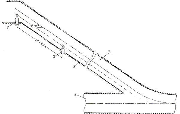При большой глубине заложения гидротехнических тоннелей делается разрыв между поверхностью и тоннелями в целях отображения на профиле поверхности земли.