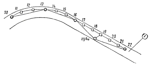 где d - число всех направлений в сети (сплошных и несплошных); r - число всех пунктов в цепи; p - число определяемых пунктов. Указанные величины сопоставляются с результатами оценки точности на станциях и по невязкам треугольников. Такое сопоставление рельефно выявляет действие внешних условий (особенно боковой рефракции) и влияние ошибок принятых исходных данных. Кроме этого, рекомендуется определить ошибки наиболее слабой стороны, наиболее слабого дирекционного угла, а также максимальную ошибку определения координат. 1.47. По результатам уравновешивания составляется каталог пунктов триангуляции (см. приложение 1-5), тщательно проверяемый вторым исполнителем. В каталоге показываются как все вновь определенные пункты и направления, так и все исходные; последние выделяются красным цветом. В каталоге обязательно указываются осевой меридиан зоны проекции Гаусса и уровенная поверхность, принятые для вычисления триангуляции, а также величины условных увеличений или уменьшений координат. 1.48. По каждой исполненной триангуляции составляется подробный технический отчет, в котором должны быть даны: а) расчетное обоснование принятого разряда триангуляции; б) анализ точности исходных данных, послуживших в качестве основы для развития данной триангуляции; в) описание условий рекогносцировки; г) описания и чертежи триангуляционных центров и фотографии построенных знаков; д) описание методики базисных и угловых измерений и результаты оценки их точности; е) обоснование принятых зон проекции Гаусса и уровенной поверхности. Здесь же должны быть даны указания о необходимости введения поправок в измеренные элементы наземной и подземной полигонометрии; ж) описание методики вычислительных работ. Если в процессе строительных работ использовались рабочие координаты пунктов триангуляции, то должна быть приведена сводка расхождений координат и дирекционных углов по рабочим и окончательным данным; з) результаты оценки точности элементов триангуляции в сопоставлении их с расчетными данными и данными оценки точности полевых измерений; и) общее заключение о пригодности данной триангуляции для обеспечения требуемой точности всех горностроительных работ и особенно точности сбоек встречных тоннелей. Е. Тоннельная полигонометрия взамен триангуляции1.49. Тоннельная полигонометрия взамен триангуляции прокладывается вдоль трассы сооружения в виде одиночного хода или в виде замкнутых полигонов, опирающихся на пункты государственной или городской геодезической основы. Пункты тоннельной полигонометрии не рекомендуется располагать в пределах зоны возможной деформации, а также в удалении от трассы более 1 км. 1.50. Во всех случаях создания тоннельной полигонометрии она должна удовлетворять требованиям табл. 1-10. Таблица 1-10 Тоннельная полигонометрия взамен триангуляции