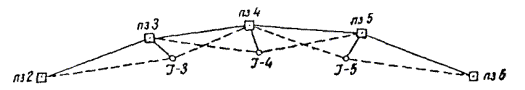 где fb - невязка треугольника; п - число треугольников, входящих в оценку точности. 1.43. Учитывая необходимость использования координат пунктов триангуляции для вычисления координат пунктов полигонометрических ходов и предварительных разбивок, при получении рабочих координат пунктов разрешается использование упрощенных методов уравновешивания. При этих вычислениях рекомендуется сначала уравновесить условия фигур и полюсные условия упрощенными методами, а затем с уравновешенными углами составлять простые цепочки треугольников между базисами или твердыми сторонами. Не разрешается пользоваться рабочими координатами пунктов триангуляции для всех работ, связанных с ориентированием подземных выработок и разбивками основных подземных сооружений. 1.44. Перед использованием для уравновешивания дирекционных углов и длин сторон, а также координат пунктов городской или государственной триангуляции должен быть произведен анализ их точности по материалам новых измерений. Для этих целей измеренные углы сопоставляются с разностями исходных дирекционных углов (на твердых пунктах) и подсчитываются свободные члены азимутальных, боковых, базисных и координатных условий. Полученные результаты должны отвечать установкам табл. 1-2 и 1-9. Тщательный анализ, в сочетании с изучением материалов при проектировании цепи (см. п. 1.06), позволяет выявить исходные пункты, использование которых может внести недопустимые искажения при уравновешивании триангуляционной цепи. 1.45. Для окончательного уравновешивания триангуляции используют один из строгих методов. В каждом отдельном случае выбор метода должен обеспечить экономию вычислительного труда. Желательно произвести уравновешивание двумя независимыми способами. 1.46. Одновременно с уравновешиванием триангуляции необходимо произвести оценку точности элементов сети (см. табл. 1-1 и 1-2). Должны быть определены из уравновешивания средние квадратические ошибки направлений по формулам: Для способа условных измерений