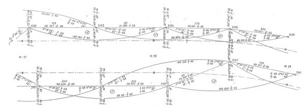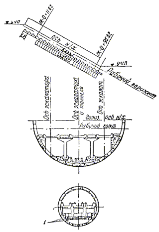 На строительные и деривационные тоннели больших протяженностей составляются графические типовые поперечные сечения по типам обделок. На участок типовой обделки составляются три сечения (начало, середина и конец типового участка) с нанесением на них фактического положения и указанием пикетажа.