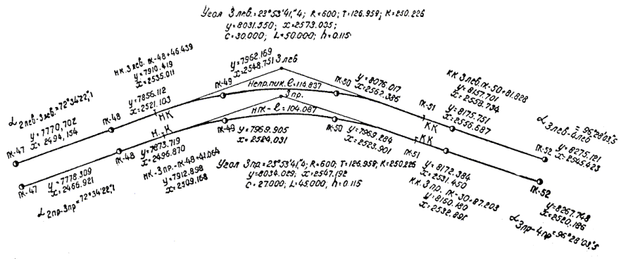 Геометрические элементы трассы в плане |