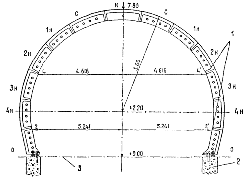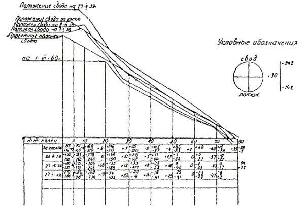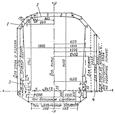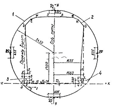 б) для гидротехнических тоннелей протяженностью свыше 1000 пог. м составляются таблицы поперечных сечений через 10 м в соответствии с приложениями 31-2, 31-3, 31-4.